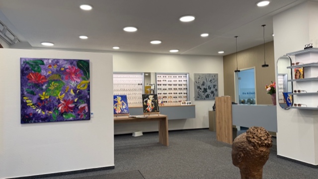 Ausstellung in den Geschäftsräumen der Brillenfabrik und im Rathaus